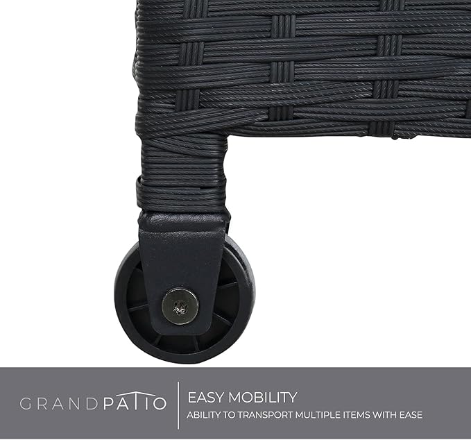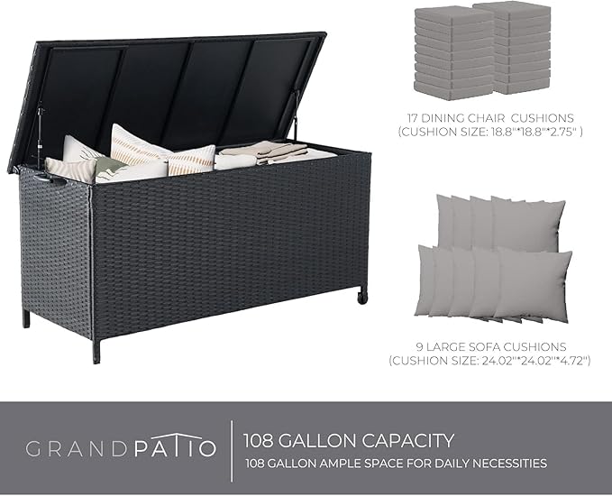Grand patio 108 Gallon Deck Storage Box Indoor Outdoor Wicker Bin for Patio Furniture Cushions Garden Tools Pool Accessories, Black