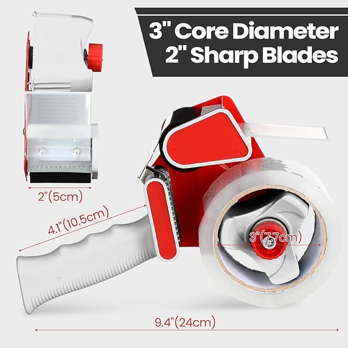 - Product Base Material: the 2 inch packing tape dispenser gun is made with this heavy duty metal mechanism and plastic surface, solid and sturdy; The tape gun handles are useful; These packing tape gun are easy to use, and suitable for handling a lot of sealing, combining, reinforcing, and bundling operations