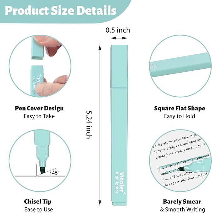- Cute Pens Easy to Hold: The pastel highlighter is designed with square shape,it’s comfortable and easy to hold, without a sore hand and don't roll around while using.