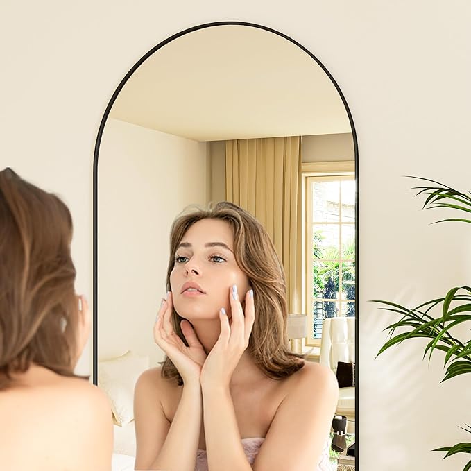 Hasipu Extra Large Arched Rectangular Full Length Wall Mirror, 81"L x 32"W, Black Aluminum Frame, Tempered Glass, Leaning/Wall Mount, Modern Style for Bedroom/Living Room