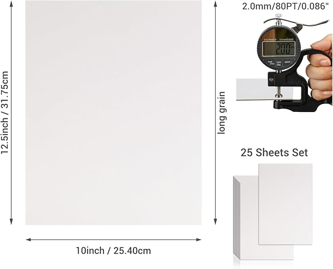 25 Pcs Book Board, Binder Board, Cover Board, Heavy Duty Chipboard for Book Binding, DIY Cardboard (White, 10 x 12.5 Inch 80PT)