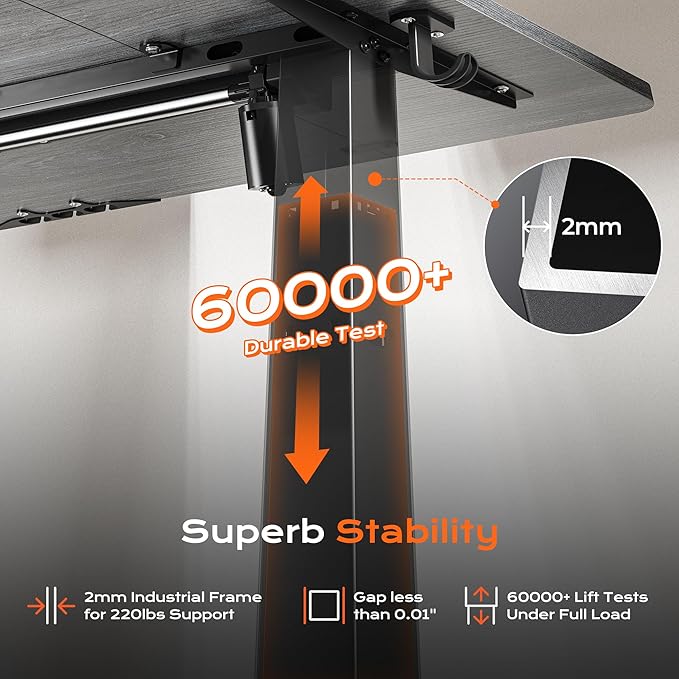 - 【Built to Last with Exceptional Stability】The industrial-grade steel frame and T-shaped design of the stand up desk support up to 220 lbs, ensuring stability and reliability for years to come. Paired with a durable motor, this home office desk is designed to meet the demands of your dynamic workday
