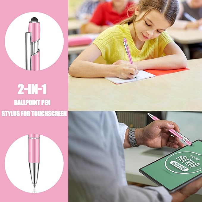 - 2-in-1 design stylus: Touch screen stylus and ballpoint pen; one end has a sensitive stylus and the other end comes with a high quality blue ballpoint pen, twist the stylus pen body to extend the pen; you can use this pen to take notes on your tablet, phone or computer screen