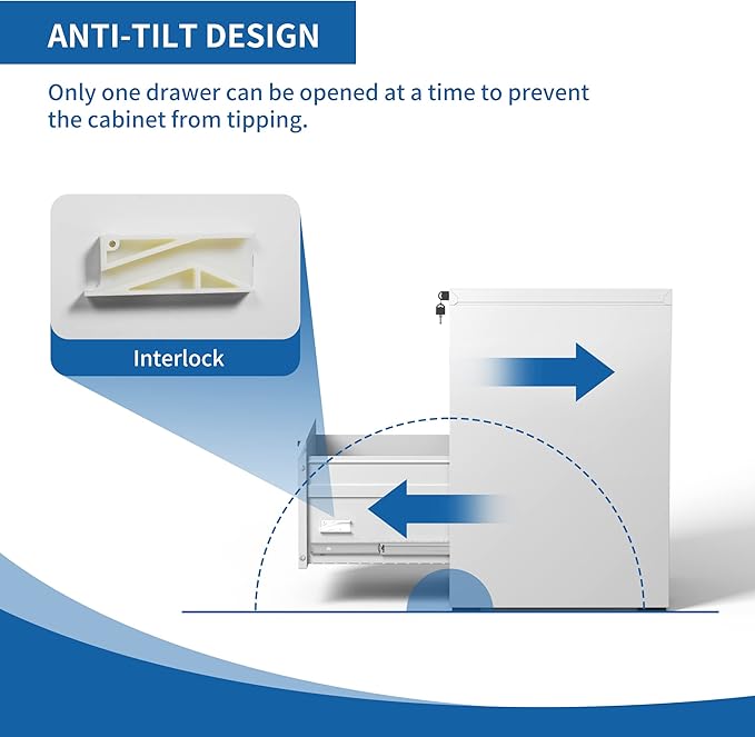 - 【Anti-tilt Design】This vertical legal file cabinet designed with full extension and steel ball-bearing suspension, all drawers of the file cabinets can be opened and closed quietly and easily. The anti-tilt system ensures that only one drawer can be open at a time, preventing the metal file cabinet from tipping over. You can have peace of mind knowing that your important documents and items are safe and secure.