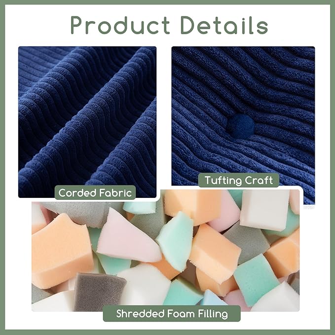 - HIGOGOGO bean bags are made from ultra-soft and durable corduroy, a fabric that resists wear and tear, ensuring your bean bag chair will remain comfortable and cozy for years to come