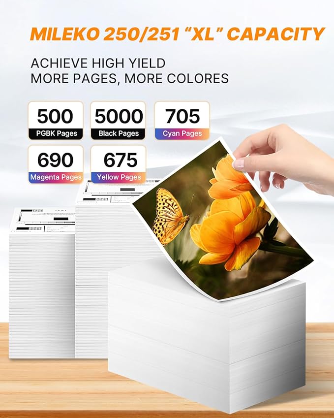- MILEKO for canon 250 and 251 ink cartridges for canon mx922 printer ink cartridges provide clear and vibrant printing, Save time by avoiding common printing problems such as streaks, smudges, and leaking.