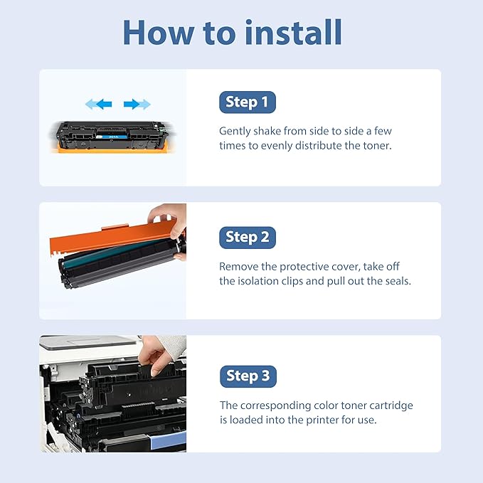 - Easy to install your new replacement for hp 201A 201X toner cartridge, just follow the instructions and get up and running in minutes. Tip: Avoid touching the green drum, as oil stains on your fingers may affect the print quality.
