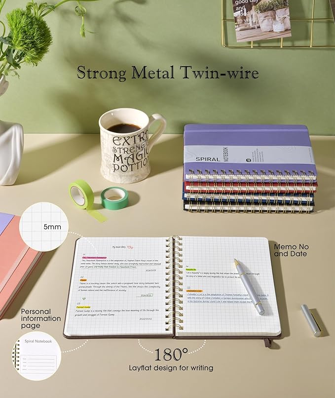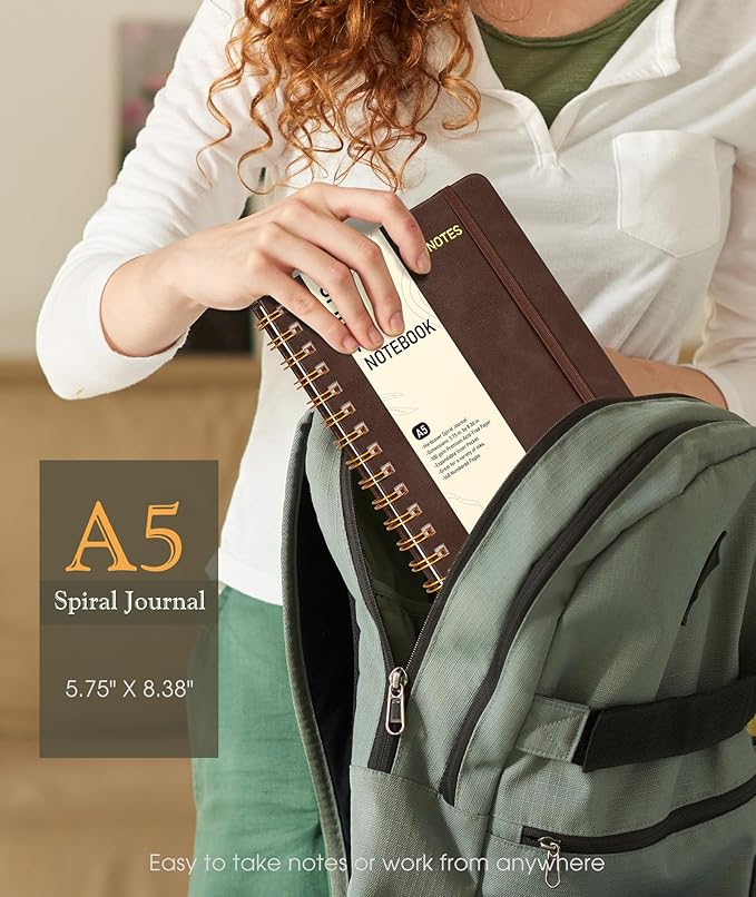 Graph Spiral Journal Notebook, A5 Hardcover Spiral Journals for Women Men, 100 GSM Graph Paper Notebooks, 150 Pages Spiral Bound Grid Notebook for Writing Note Taking Work 5.75" x 8.38", Dark Brown