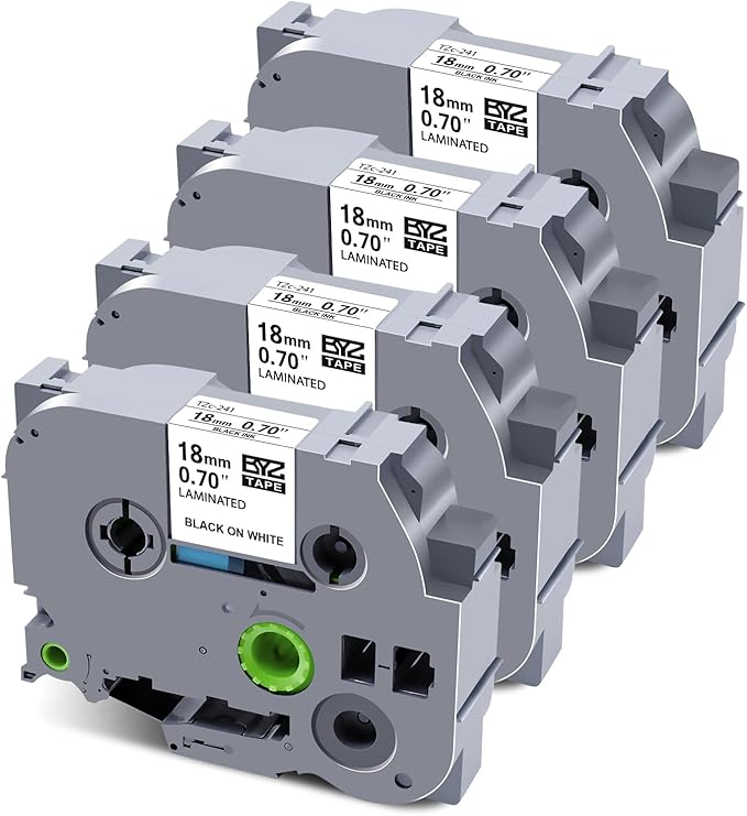 - Package: 4 x TZe-241 TZe tape 18mm 0.7 replacement for Brother P Touch label tape 18mm TZe-241(TZe231 TZ241 TZ-241), 3/4inch x 26.2feet (18mm x 8m) for each tze-241 label tape, black on white.