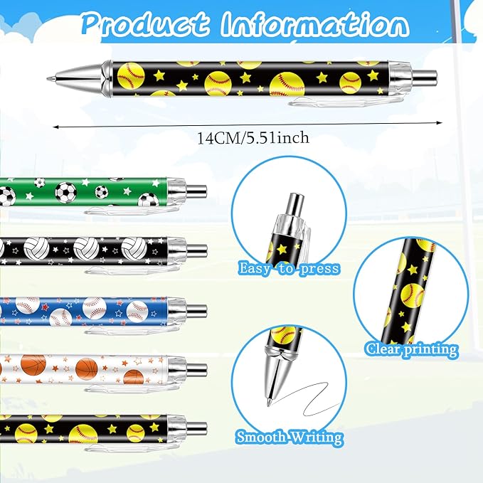 - Premium Material: Our sports party favors are made from plastic that resists breakage and deformation, making it a good writing instrument for daily usage; With black ink for strong, clear lines, these pens are designed for a smooth writing experience that won't scratch paper