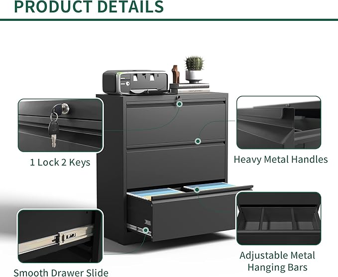 - 【Assemble and Satisfactory Service】: The 3 drawer metal lateral file cabinet requires assembly and comes paper assembly instruction sand videos to help you complete the installation faster. If you have any questions after purchasing, you can contact us directly. We will help you to solve all problems.