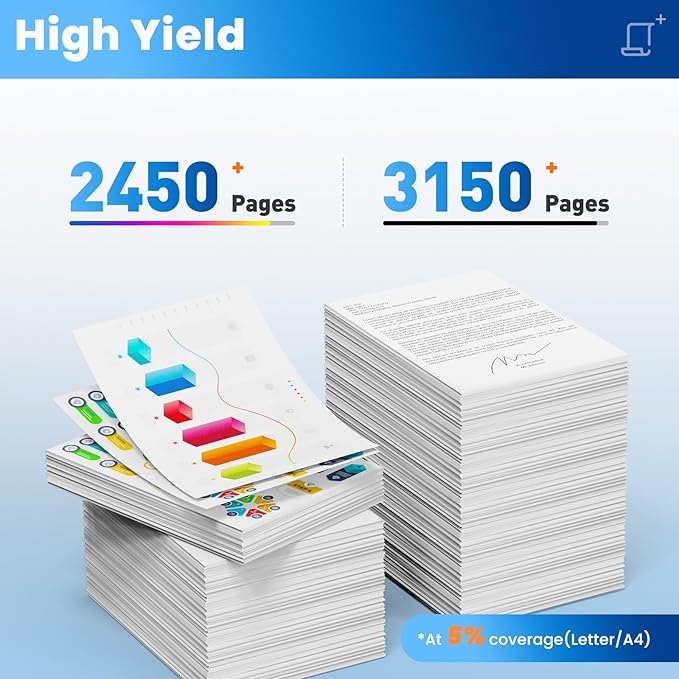- 206X Toner Cartridges High Page Yield: High yield up to 3150 pages for 206X black toner cartridge and 2450 pages for 206x Cyan/Magenta/Yellow toner cartridge 5% coverage Letter/A4. Print documents or charts clearly and suitable for standard office/home printing.