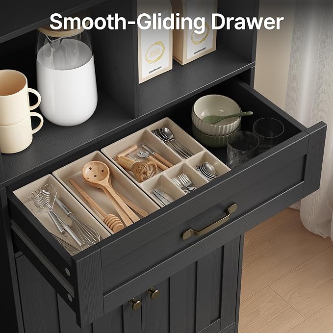 Gizoon 71'' Tall Storage Cabinet, Kitchen Pantry Cabinet with Doors & Drawers, Wooden Storage Organizer for Living Room, Office, Kitchen, with Adjustable Shelves, Anti-tip, Metal Handle, Black