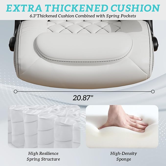GYI O205P High Back Executive Office Chair, Big and Tall Office Chair 400LBS with Rubber Wheels,Ergonomic Adjustable Computer Desk Chairs with Padded Flip-up Armrests,Lumbar Support (White)