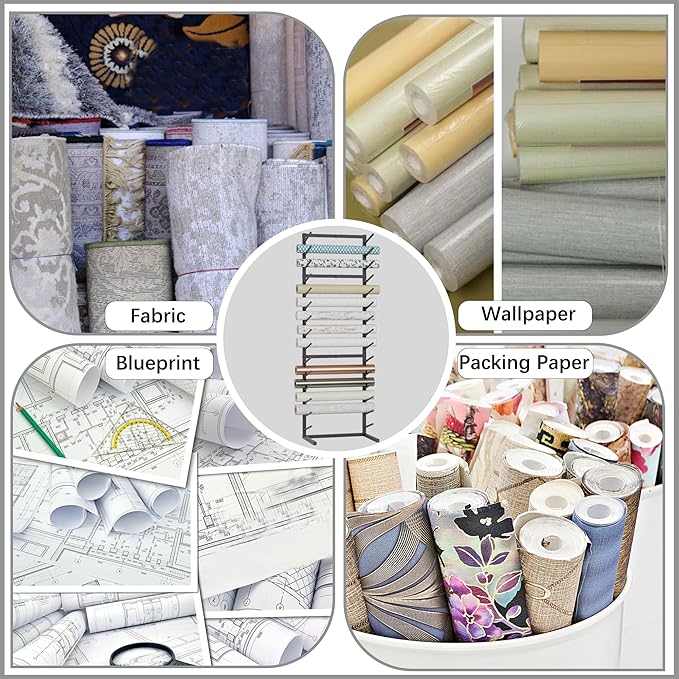 - 【30lb Max Load per Arm】15-tier reinforced metal arms (not wires!) hold 30 lbs each—double standard capacity. Stores 1-4 rolls per shelf (60 total) for blueprints, posters, vinyl rolls, or art prints without bending.