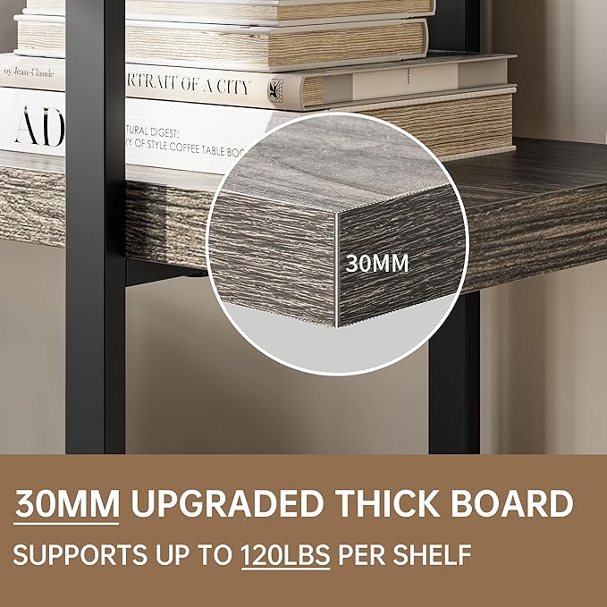 Heavy Duty 5-Tier Industrial Bookcase, 47" Wide Wood Bookshelf for Home Office, 120lbs Shelf Capacity, Rustic Shelving Display with Reinforced Horizontal Shelf for Living Room Bedroom,Grey