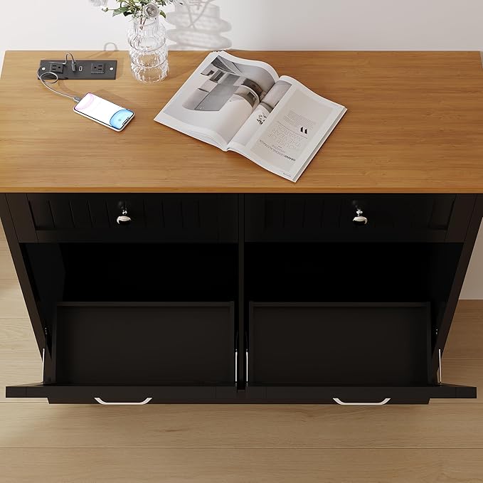 - Multifunctional Storage Hub: More than just a trash cabinet! Use it as a laundry hamper in the utility room, a bedside waste bin, or even a charging station—the built-in power outlet keeps devices powered up. The metal hinges holds the door tilt open for both hands to dispose of waste, while the drawer organizes trash bags and supplies