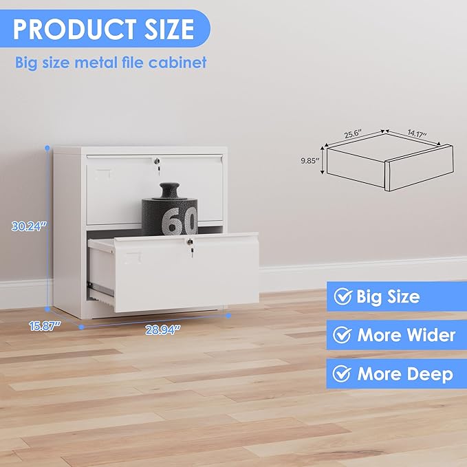 - Upgraded Independent Locks System: Security is paramount with the 2 Drawer Lateral File Cabinet, featuring an upgraded independent locks system. Each drawer comes with its own lock and two keys, providing individualized protection for your confidential documents;