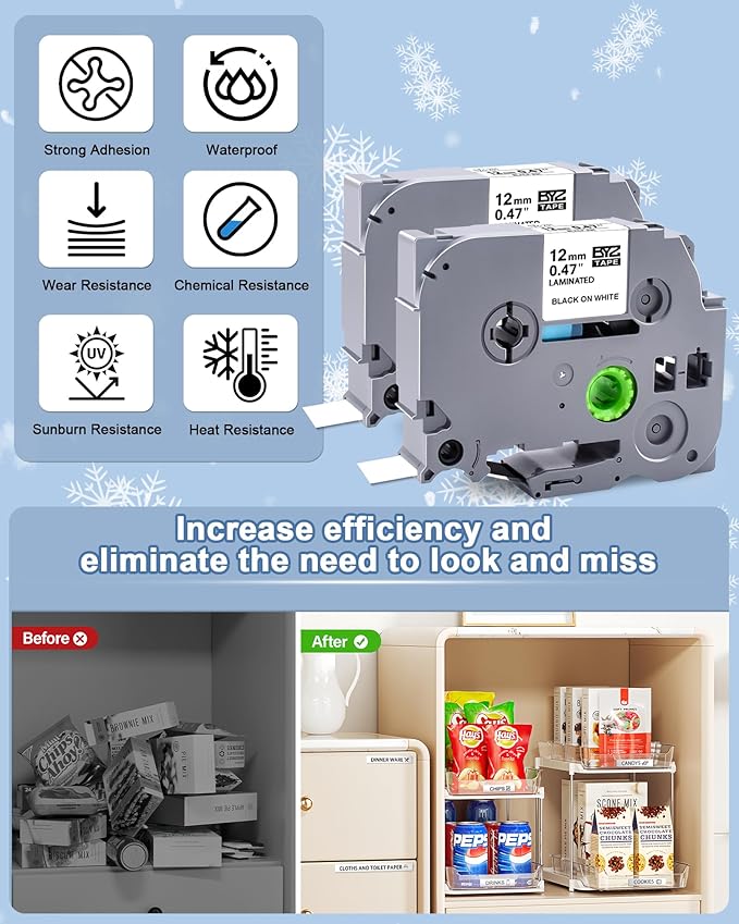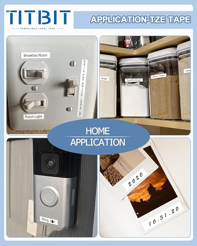 - P touch label maker tape 1/2 white is chemical and water resistant,grease and dirt resistant,fade resistant,high temperature resistant,corrosion resistant,long-lasting,etc.TZe-231 label maker tape is perfect for daily life,widely used in office,school,home,factories,warehouses,bedroom,hotel,laboratories,supermarket,restaurant,telecom industrie,etc.It works well even in harsh weather conditions